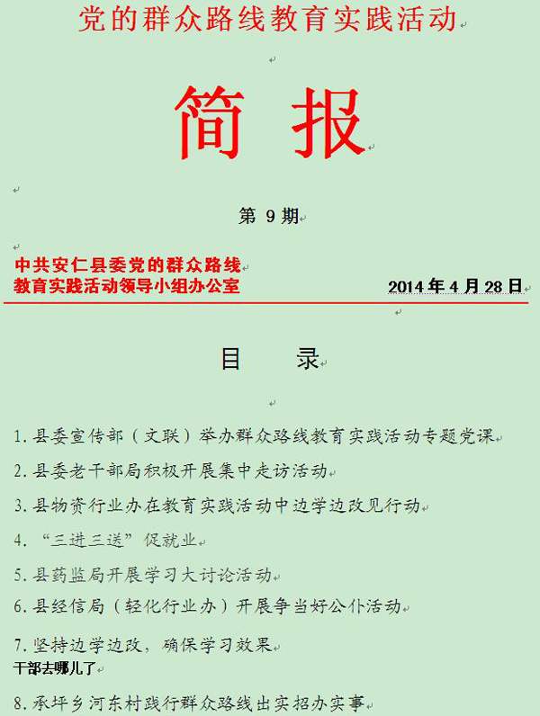 发:各乡镇党委,县直机关、人民团体、企事业各单位教育实践活动领导小组。