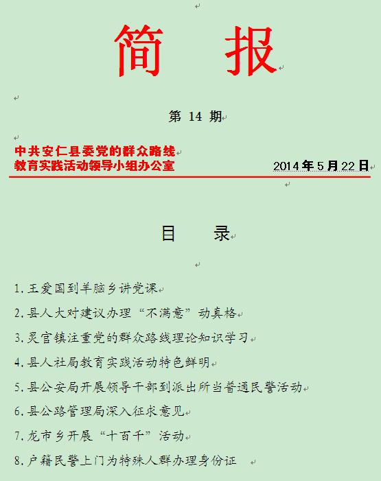 5月中旬以来,县公安局户籍民警用实际行动践行党的群众路线,结合工作岗位,以“体民情、查民意、解民难”为切入点,