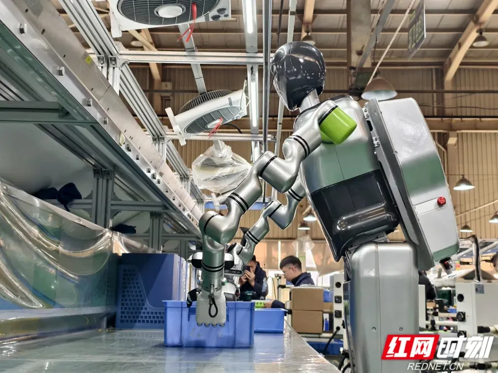 中联重科人形机器人在生产车间作业。(企业供图)