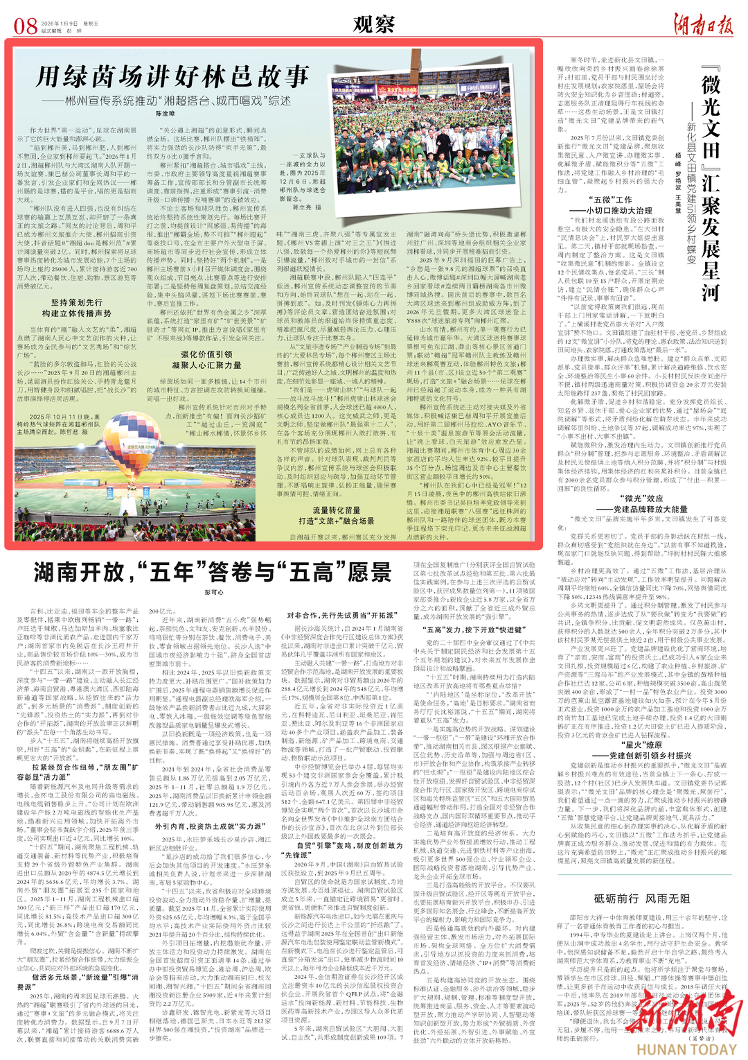 当体育的“刚”融入文艺的“柔”,湘超点燃了湖南人民心中文艺创作的火种,让赛场成为全民参与的“文艺秀场”和“综艺广场”。