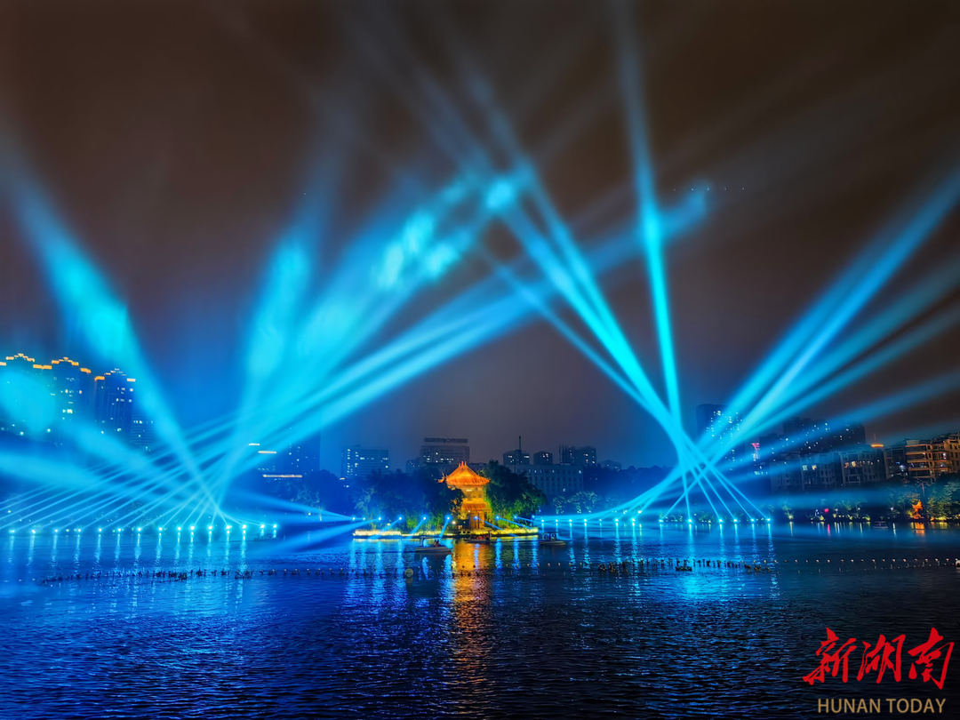夜幕降临,北湖公园里的户外清吧“云岛营地”燃起了篝火,年轻男女们纷纷涌到湘超直播的大屏幕前。一旁,水幕光影秀缓缓开启,韩愈叉鱼、女排拼搏等故事场景,通过高科技手段在夜色中再现。这是郴州以“小而美”场景焕新为目标,引入XR虚拟现实、沉浸式光影等技术打造的多元化文旅新场景之一。