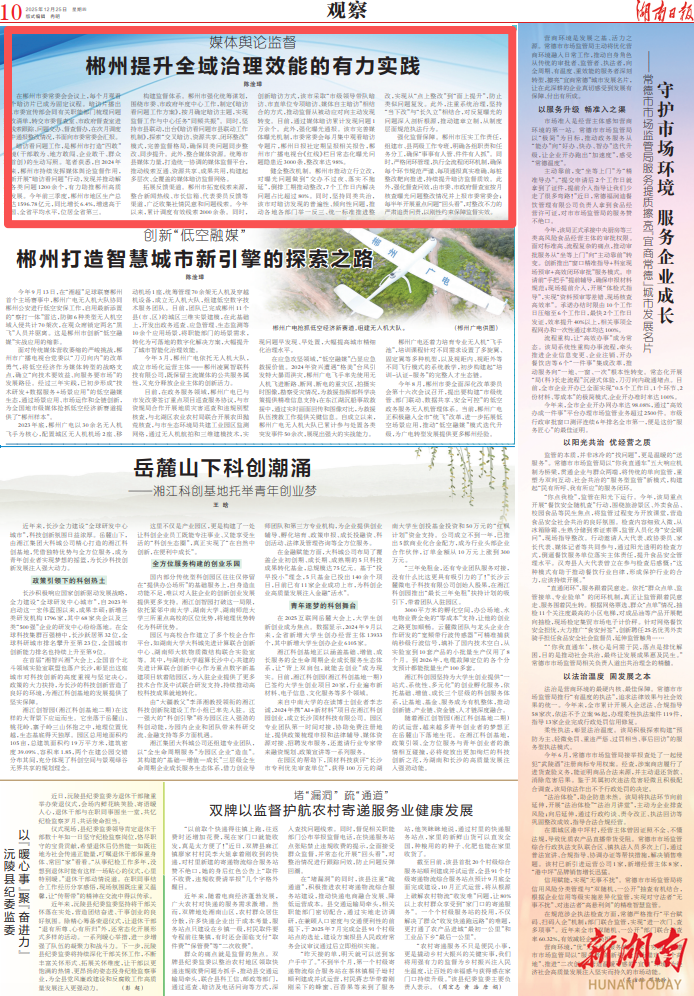 暗访看问题工作,是郴州市打造“四敢”环境(干部敢为、地方敢闯、企业敢干、群众敢首创)的生动写照。笔者获悉,自2024年以来,郴州市持续发挥媒体舆论监督作用,创新开展“暗访看问题”行动,发现并推动解决各类问题1200余个,有力助推郴州高质量发展。今年前三季度,郴州市地区生产总值达1596.78亿元,同比增长6.4%,增速高于全国、全省平均水平,位居全省第三。