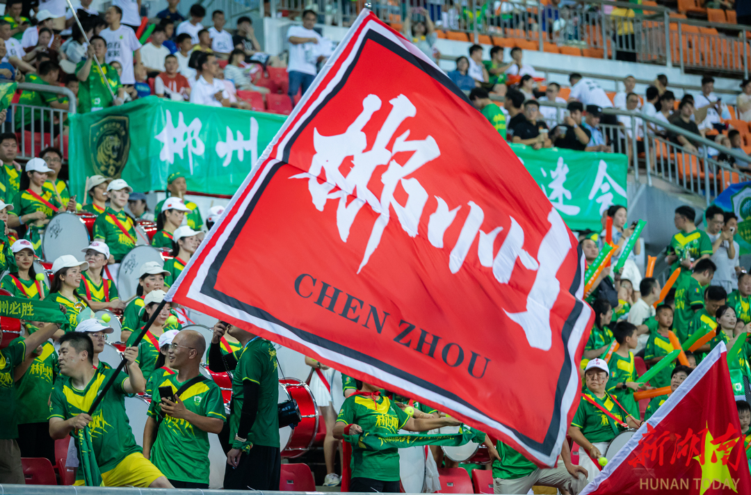 9月20日,郴州队对阵长沙队,500余名大湾区球迷组成助威方阵,声势浩大,激情澎湃。